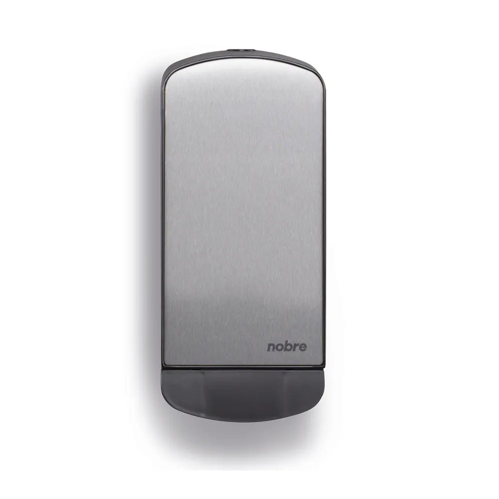 Saboneteira com frente em inox que combina com diversos ambientes, economia e proteção no uso de álcool em gel ou sabonete líquido.